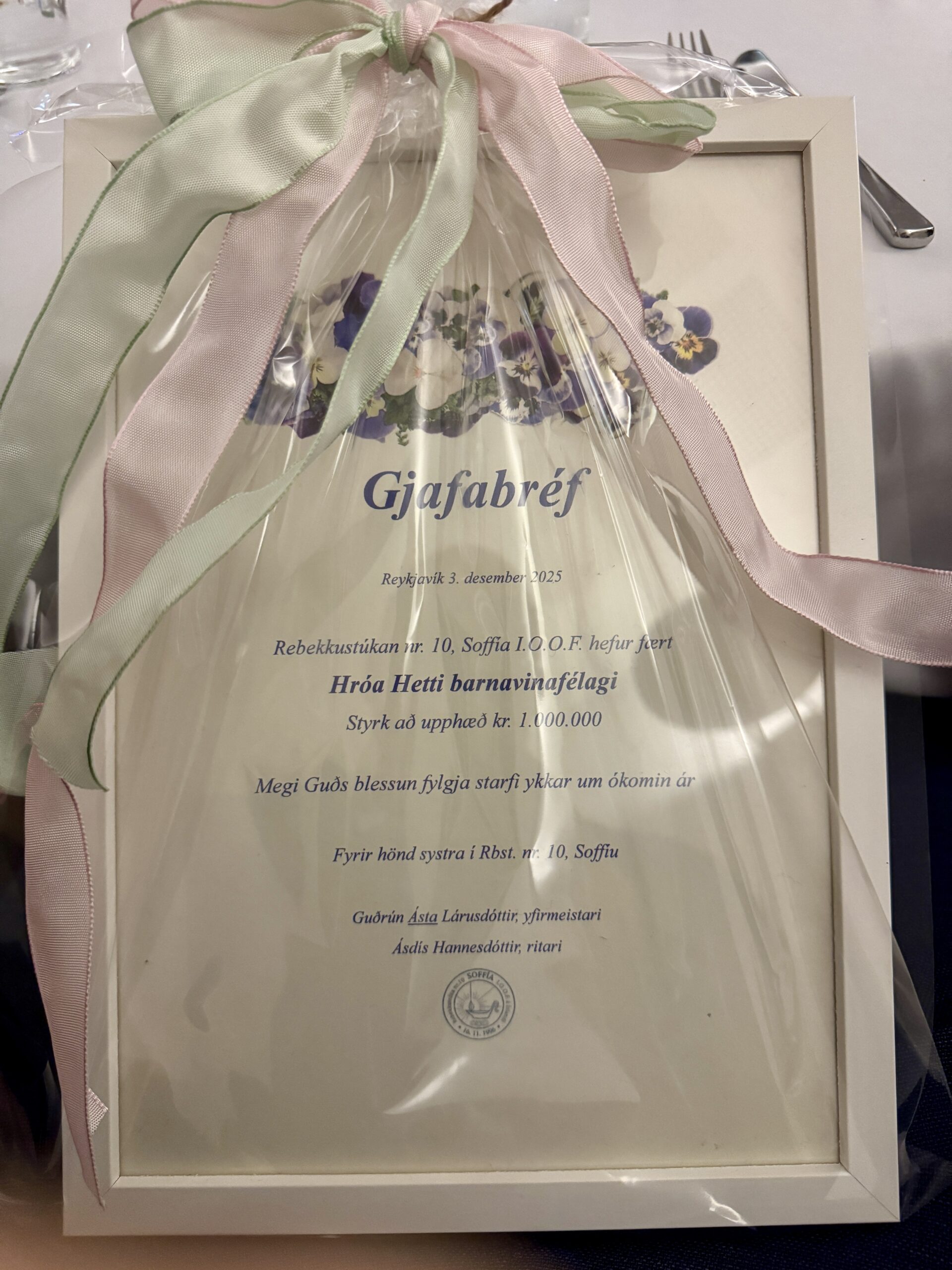 Rebekkustúka nr. 10 sem heitir Soffía styrkti Hróa Hött, formlega um 1 Milljón kr.